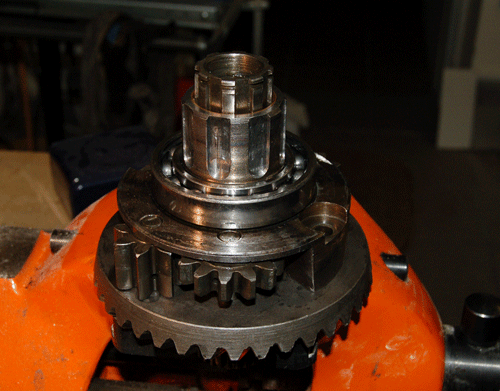 Freund Tony schenkte mir die beiden Sperr-Räder und einen defekten Sperrhebel. Obwohl die Aufgabe keine leichte war, bekam ich doch Lust - nämlich, als ich im Vorjahr in einem Moor stecken blieb :-(, mir mein nichtgesperrtes MT16-Diff zu adaptieren. Das normale Diff-gehäuse kann relativ leicht adaptiert werden, man muß nur die Löcher für den Sperrhebel bohren, die Lagerblöcke dafür sind in der Gußform bereits vorgesehen, die Bohrdurchmesser ergeben sich aus den Abmessungen des Sperrhebels. Dazu einige Bilder: