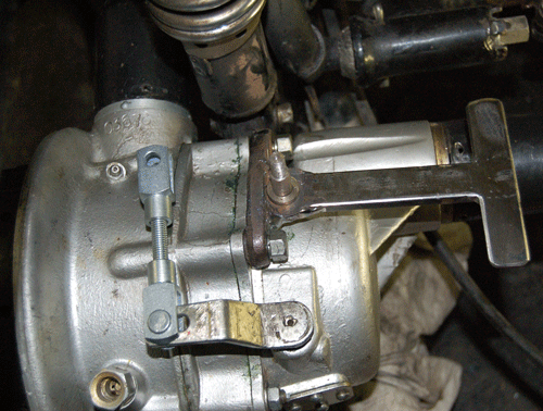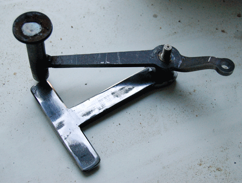 Zur Betätigung habe ich mir einen Mechanismus angefertigt, der direkt an die Aufnahmegabel der Schwinge geschweisst wird. Damit entfällt das kompliziert Hebel- und Stangenwerk, das manchmal dazu führt, dass die Sperre während der Fahrt eingelegt wird (das passiert durch die Auf- und Abbewegung der Schwinge). Bei dieser Konstruktion wird das komplett vermieden.