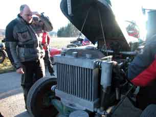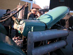 Nette Ausfahrt, leider kein Schnee mehr - Höhepunkt war die Besichtigung eines Holzgastraktors (siehe Foto). Trotz milder Temperaturen um -10C bis -15C in der Nacht waren nur 2 Zelte im Einsatz, beides beheizte Feuerzelte (Beacon Forrest). Ich probierte dabei meinen neuen, zerlegbaren Zeltofen (Kifaru, siehe Foto aus). Heizt gut mit Kohlebriketts, aber das Ofenrohr wurde so heiß, dass gleich ein Teil des Zelts wegschmolz (das würde man sich von einem ausdrücklich als Feuerzelt angepriesenen Tippi nicht erwarten - ich kann dieses Zelt von feuerzelte.de nicht weiterempfehlen, den Ofen aus den USA hingegen schon - Vorsicht: teuer!.