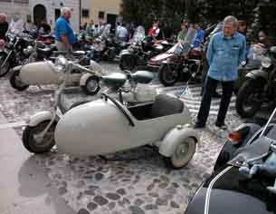 Gespanntreffen im Friaul, sehr gut organisiert von den Gespannfreunden in Spilimbergo ( http://www.associazionemotociclisticafriulana.com/). Wunderbare Ausfahrt in die Berge mit herrlichem Blick über das Flussbett des Tagliemento. Man wohnt in Holzblockhäuesern, die als Notquartiere nach dem großen Erdbeben errichtet worden waren - sehr komfortabel - jedes Haus hat 3 Zimmer à 2 Betten mit gemeinsamer Küche & Bad/WC. Gemeinsames Abendessen und sehr feines Mittagessen bei einem kleinen Bergwirt. Interessante Fahrzeuge, die man sonst selten sieht (zB. Lambretta-Gespanne, siehe Bild). Sehr empfehlenswert!