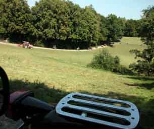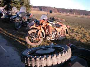 Ausfahrt durch die sanfte Hügellandschaft rund um Tillmitsch, herrliche Weinberge, schöne Gespanne (siehe BMW R60 unten), Kukuruzessen in der Zeltwohnlandschaft - sehr entspannend. Direkt neben dem Zeltplatz Bademöglichkeit im Fluss...